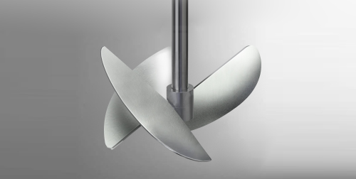 也被称为推进式搅拌桨,如图所示。桨叶前面可为平面或凹面,但背面都是凹面。在旋转时使液体向前方呈轴向流排出,使之在罐内形成循环,用于产生轴向流。这种桨叶循环速度较高,但是循环量较大,搅拌时产生的剪切力较小,但其和径向流桨叶一样,均是产生的单向流,因此混合效果较差,常用于低粘度流体,常用转速范围为100~500rpm。此类桨式及推进式桨叶对气体吸收过程基本上不适用,只有在少量易吸收的气体或要求分散度不高时才能应用。它主要用于液-液体系的混合、使温度均一化、在低浓度固-液体系中防止淤浆沉降等或者某些特定的厌氧培养。 |